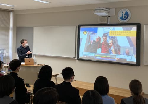 最後に、本校と指定校協定を結んでいるウエスタンミシガン大学について動画を使って紹介しました。